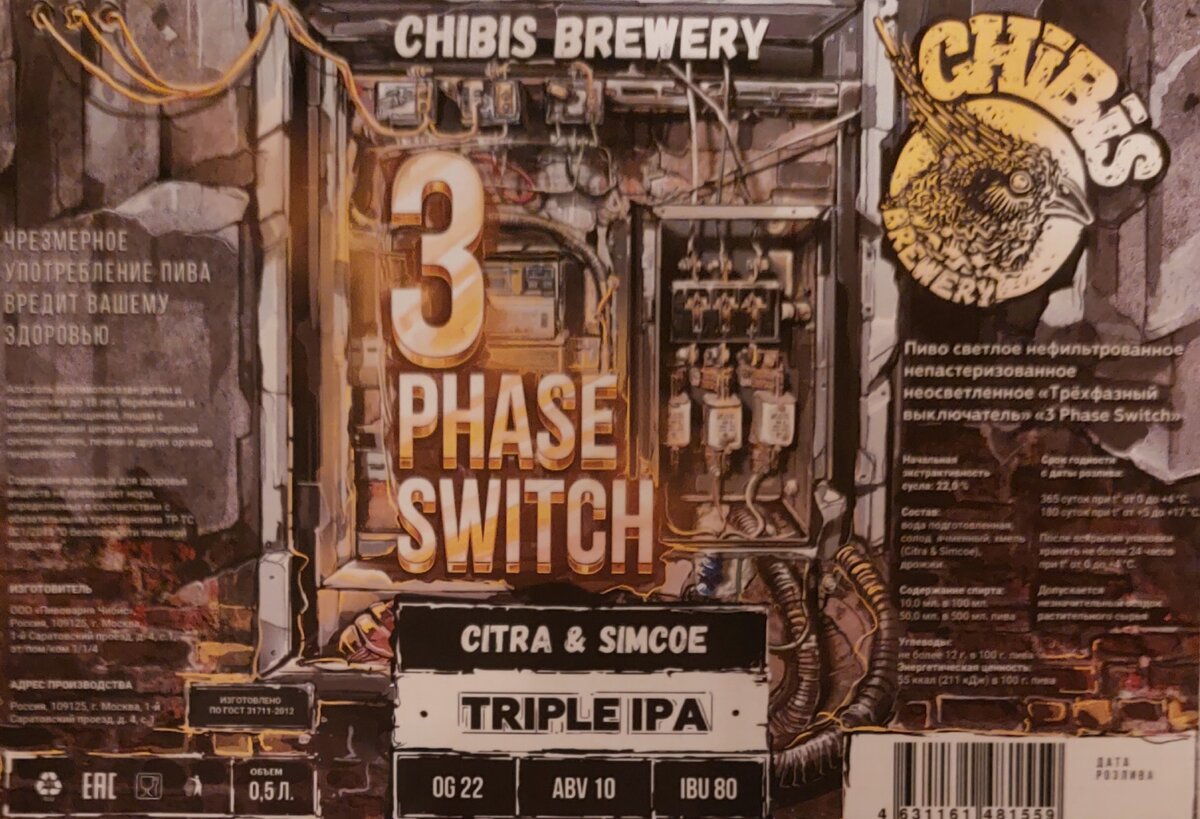 Напиток в стиле Triple IPA на хмелях Citra и Simcoe от московской пивоварни CHIBIS.