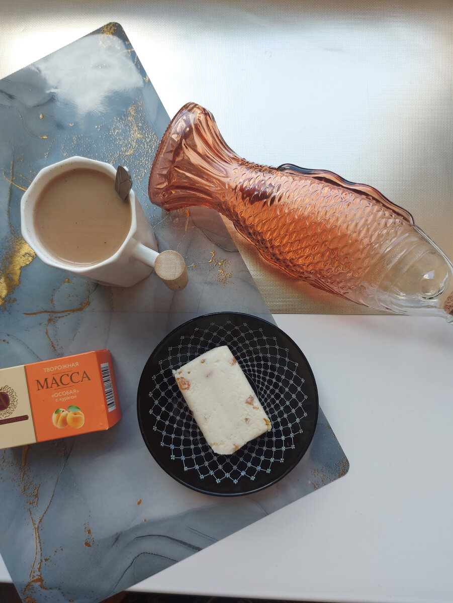 Совершенно перепуталось все в голове, будто зонтиком помешали. Путаю дни, недели, месяцы. Даже ведение планера сейчас не спасает, уже туда вношу неверные данные🙈 Из-за этого чуть было не пропустила прием по записи, а записалась я туда аж месяц назад и если бы меня что-то не дернуло, повторно записаться было бы крайне сложно и скорее даже невозможно, ведь скоро нужно уезжать. Так что летела сегодня туда как ракета. Главное успела и надеюсь все не зря. В планах, поездка на дачу в начале месяца, но загадывать что-то уже боюсь. Пока пусть все идет как идет. С питанием пока все. Не хочу пока заострять на этом внимание. Если еда не лезет, насиловать себя ей не буду. Буду воспринимать это как временное явление и последствия сильного стресса. Завтрак Раньше могла съесть подобную творожную массу и даже не задуматься, что в таком маленьком брикете таится столько калорий. Конечно, если бы не мое нынешнее состояние и питание, я бы лучше приготовила просто творог с сах. замом, порезала бы кура