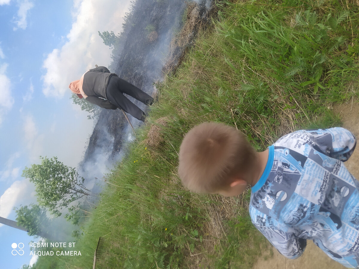 Ох и жесть вчера была.... Полдня занимались на участке своими делами, я всё на летней обновляла да подкрашивала. Время ведь не заметно летит, пошла помидорки в теплицу пасынковать. Думаю- скоро уже и на электричку собираться в квартиру ехать, дала задание дочке кушать приготовить и копошусь тихонечко. Как вдруг звонок от соседки- Аня, срочно бегите на помощь, сверху поле горит!!!! Собирай там кого можешь на подмогу из соседей ( у нас только бабулечка 78 лет, остальные все в городе) Схватили мы два ведра, лейку да грабли и бегом наверх. Наш то участок у реки-внизу. На дорогу то вышли, у нас ничего не горит, но зато подальше прилично от нас поле полыхает😳😳😳 По пути туда ещё сосед с нами вышел, тоже грабли прихватил. А мы тащим ещё и лейку и ведра с водой..... Первый раз и дай Бог последний мы огонёк усмиряли🥺 это было жутко. Народа там набралось с деревни даже не знаю сколько честно, сказали что пожарную вызвали даже.. Дым, копоть, ты огонь землёй гребешь ,а он на сухую траву пр