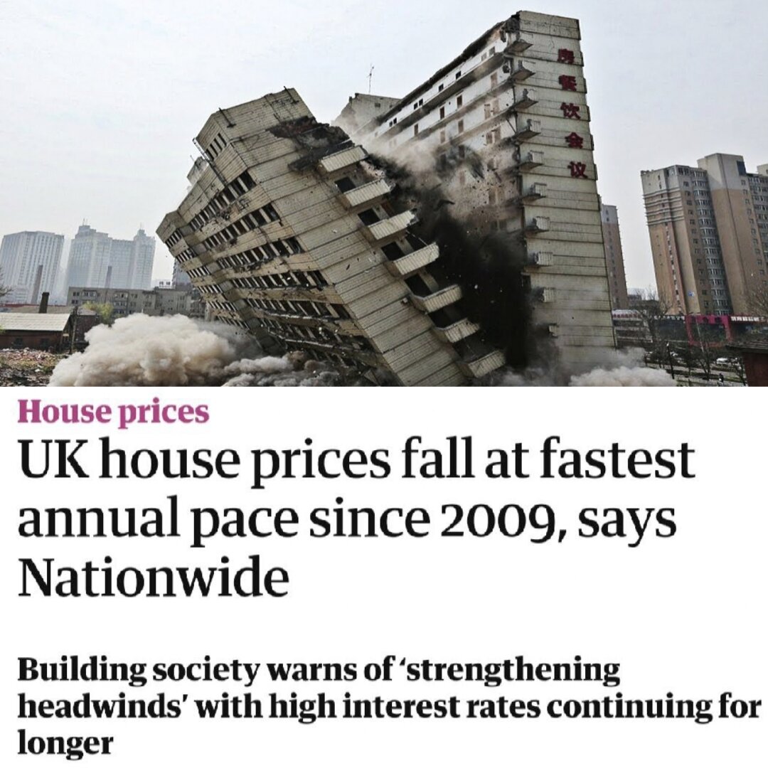 О том, что цены на дома и квартиры в Евросоюзе и США давно остановили свой рост и начали плавно снижаться мне известно. Сейчас же, пришел момент поделиться новой, куда более интересной информацией. Понятно, что по традиции всё в мире начинается с США. И вот дошел черёд и до Великобритании, где отмечается самое сильное падение с 2009 года. Почему сравниваем с 2009 годом? Напоминаю, кто забыл или не знает в силу возраста - именно тогда и бушевал на всей планете финансовый кризис, вызванный в первую очередь ипотечными кредитами. Эксперты говорят, что это верный признак приближающегося очередного кризиса, который может быть сильнее, чем в конце нулевых, учитывая, что и в банковской сфере параллельно успели накопиться большие проблемы. Если кто-то считает, что поднятая тема очередная пугалка, то как объяснить действия ЦБ РФ по ужесточению условий ипотечного кредитования. С 1 июня 2023 года условием получения ипотеки станет наличие у покупателя первоначального взноса в 20℅. А с 1 января