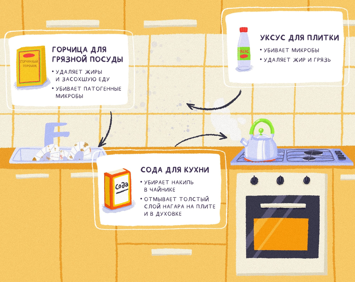 Если заменить гель на горчицу, свойства останутся те же — горчица поможет обезжирить поверхность и очистить посуду от засохшей еды. А ещё уничтожить патогенные бактерии: кишечную палочку и стафилококк. Как пользоваться: насыпать горчичный порошок в мыльницу или другую плоскую посудину. Намочить губку и макнуть её в горчицу. Затем протереть посуду, а в заключении — смыть водой. 2️⃣ Средство для мытья окон и плит → сода Если опрыскивать поверхность средствами из магазина, есть риск вдохнуть химические испарения аммиака.