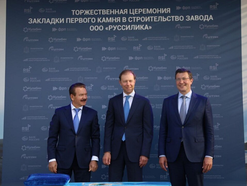 Заместитель председателя Правительства РФ – министр промышленности и торговли Российской Федерации Денис Мантуров, губернатор Нижегородской области Глеб Никитин и председатель совета директоров АО «ГК «Титан» Михаил Сутягинский заложили первый камень завода по производству микронизированных силикагелей и стабильных силиказолей на территории особой экономической зоны (ОЭЗ) «Кулибин» в Дзержинске. Об этом сообщает пресс-служба регионального правительства. Планируемый объем инвестиций в проект составит около 8 млрд рублей. Запуск производства запланирован на 2025 год. Производственная мощность микронизированных силикагелей составит 12 тысяч тонн, а стабильных силиказолей – до 42 тысяч тонн в год. Предприятие строит резидент ОЭЗ — ООО «Руссилика», которое входит в ГК «Титан». Его продукция заменит материалы, которые импортировались раньше из Европы. При этом ожидается, что себестоимость отечественного продукта будет существенно ниже при обеспечении достойного качества. Проект находится на