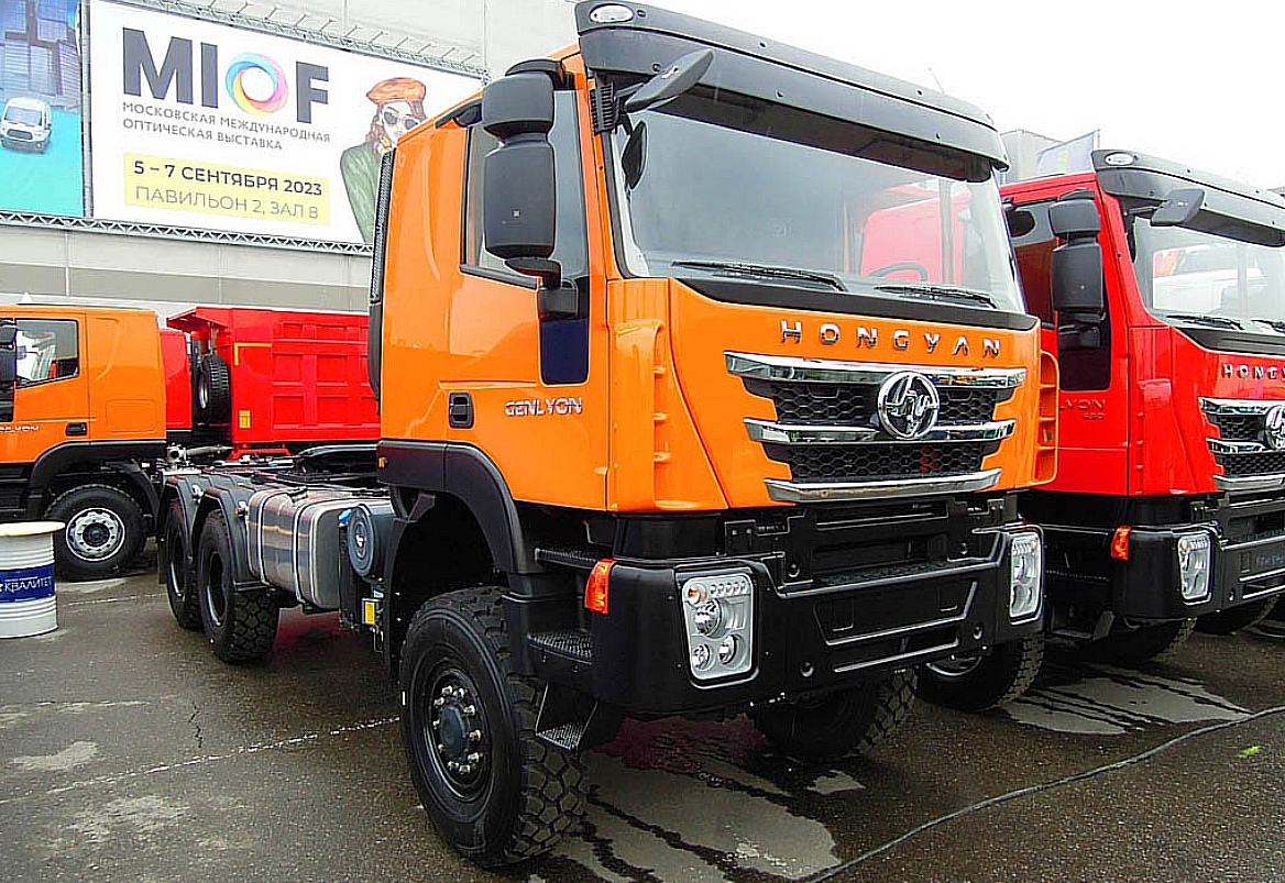 Российский дилер HONGYAN на выставке СТТ-2023 показал новый полноприводной седельный тягач HONGYAN 6×6.