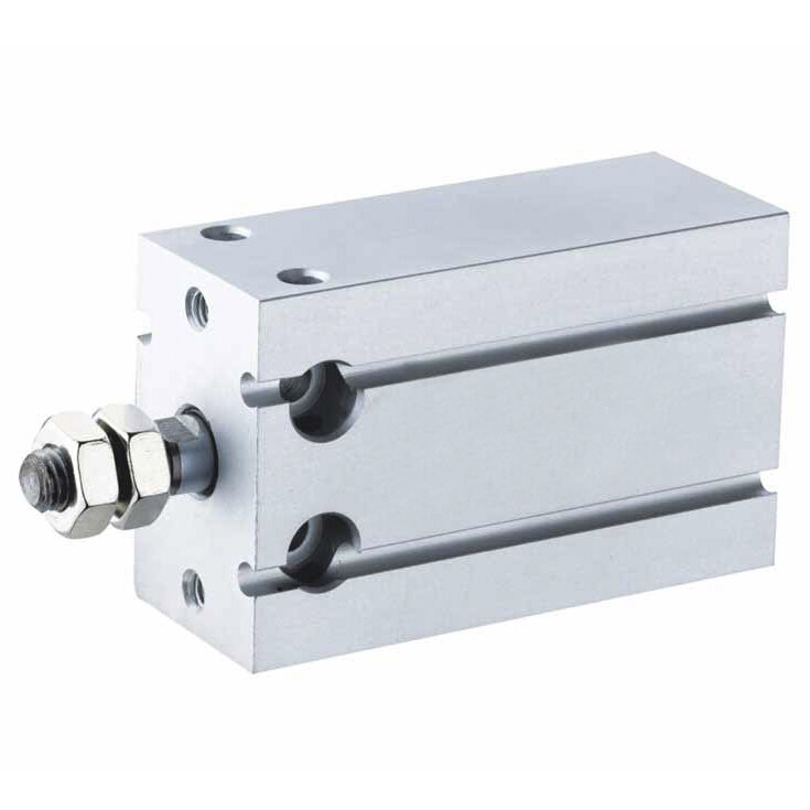 Конструкция плоского пневмоцилиндра. Обычный цилиндр имеет квадратные крышки, а гильзу круглого сечения. При сплющивании круглого сечения до относительно длинного прямоугольника с закруглёнными углами развиваемое цилиндрами усилие сохраняется. Преимущество появляется, когда такие цилиндры соединяются вместе. Оно заключается в экономии пространства. Плоские цилиндры имеют прямоугольную или овальную форму. Они бывают одно- и двустороннего действия. Максимальный приведенный диаметр 63 мм, ход до 1000 мм. Цилиндры с овальным поршнем по конструкции крышек близки к стандартным цилиндрам. В них можно использовать регулируемое демпфирование. В цилиндрах с прямоугольным поршнем демпфирование только упругое. Ход у них не более 320 мм. Ресурс цилиндров с овальным поршнем составляет примерно 70 % от стандартных. У цилиндров с плоским поршнем такой показатель редко превышает 10 млн.циклов. Ключевые особенности плоских пневмоцилиндров Купить плоские пневмоцилиндры можно в интернет-магазине «Промышле