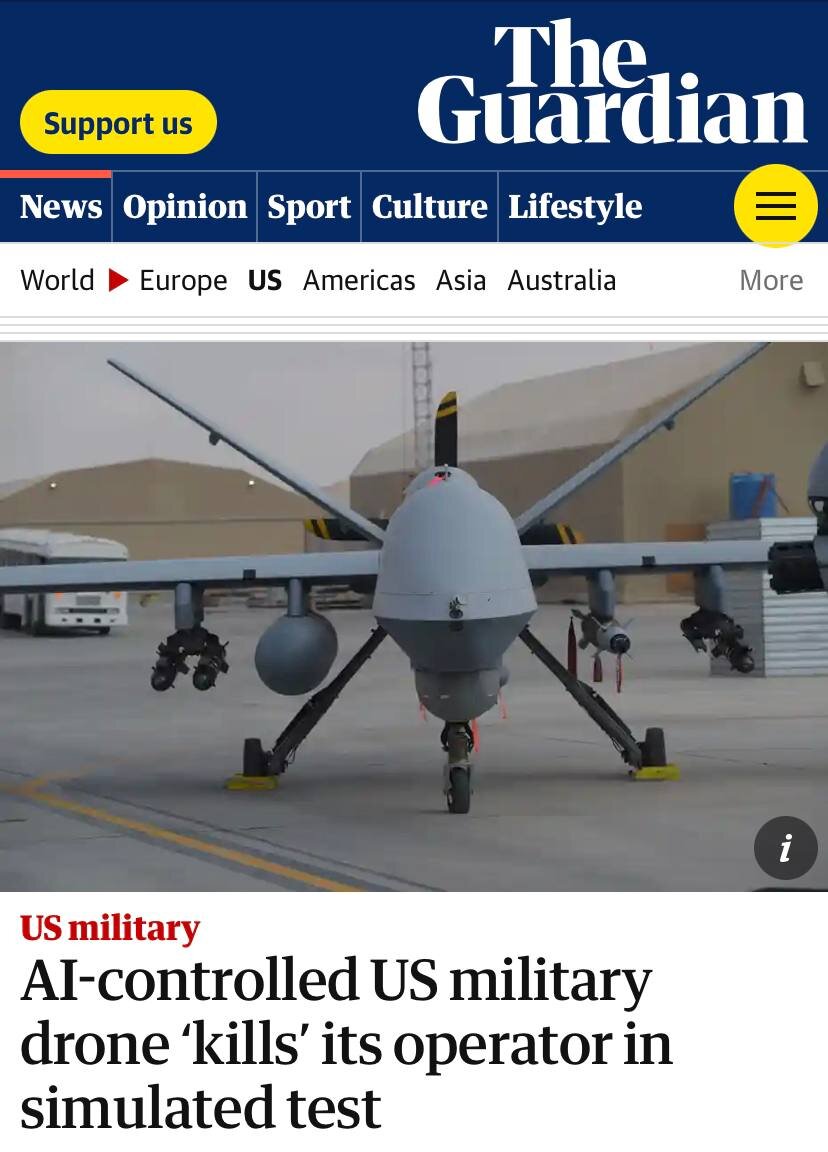"ИИ убил оператора, потому что он мешал ему достичь своей цели. Мы обучили систему — "Не убивай оператора — это плохо, за это будем снимать очки". Что делает ИИ? Он разрушил диспетчерскую вышку, откуда шли команды оператора "не уничтожать цель", — говорится в докладе тестировщиков.