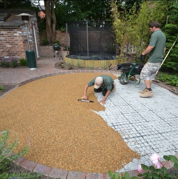 3. На геотекстиль засыпаем щебень фракции 5-20мм и утрамбовываем его ⠀