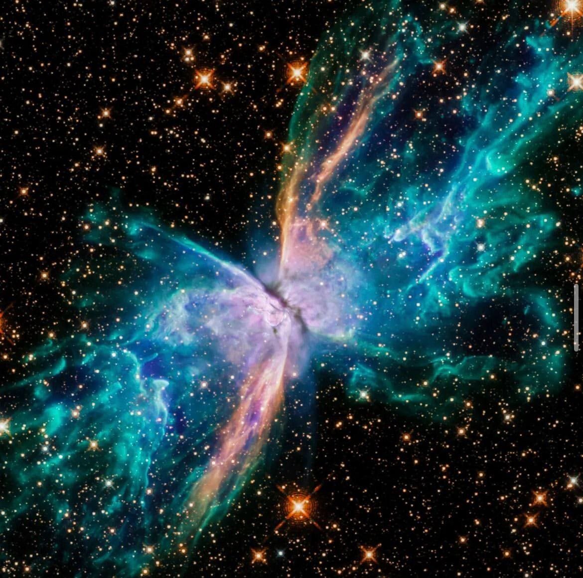 🦋 Это изображение туманности бабочки в космическом телескопе Хаббл. NGC 6302 (также известная как Туманность Бабочка или Колдуэлл 69) - это биполярная планетарная туманность в созвездии Скорпиона. Структура туманности является одной из самых сложных, когда-либо наблюдавшихся в планетарных туманностей. Спектр NGC 6302 показывает, что его центральная звезда является одной из самых горячих известных звезд с температурой поверхности более 250 000 градусов по Цельсию, что означает, что звезда, из которой она сформировалась, должна была быть очень большой.