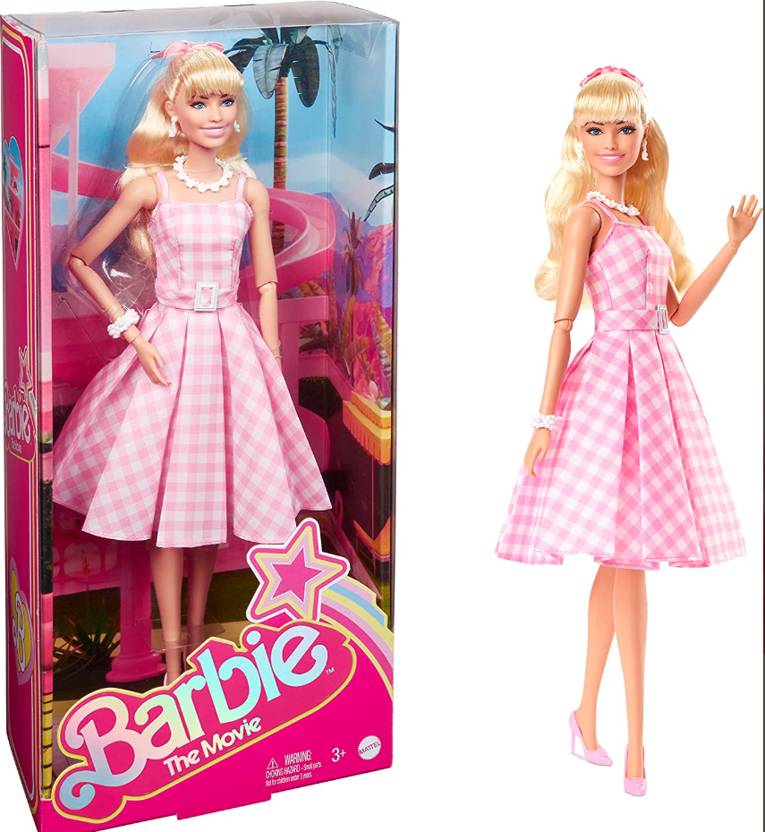 Рассмотрим куклы к релизу фильма про культовую куклу Барби! Barbie The Movie, Margot Robbie, Pink&White Gingham Dress У этой куклы розовое клетчатое платье. Из аксессуаров у нее браслет в виде цветка, ожерелье, сережки и розовый ободок с бантиком в клетку. Розовые туфельки с сердечком. Barbie The Movie, Margot Robbie, Western Outfit На Барби легендарный розовый костюм в стиле вестерн. Внизу штанин звезды белого и фиолетового цвета, различного размера с круглишками и ковбойскими сапогами. У куклы белая шляпа, большие сережки в виде звезд, на шее розовый платок. Barbie The Movie, Margot Robbie, Plaid Matching Set Барби в клетчатом пастельном костюме со шляпкой. Из аксессуаров у куклы - сережки. Голубые туфли. Barbie The Movie Ken Ретро-версия Кена в образе Гослинга. Кукла шарнирная и с прошитыми волосами, в комплекте идет доска для серфинга, которая крепится к ногам. Barbie The Movie Ken All-Denim Кен в дениме. Интересно то, что есть отсылка к Calvin Klein на резинке трусов, но вместе C