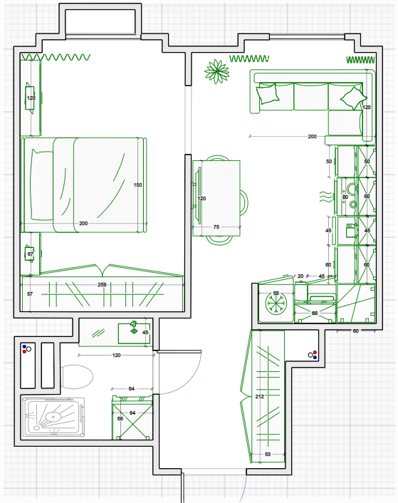 Хозяйка данной квартиры — женщина в возрасте, которая живет одна. Ей надоел старый ремонт квартиры, и поэтому она решила вдохнуть в свой интерьер новую жизнь. Получилось довольно бюджетно, простенько, но зато уютно и функционально. Проект Прихожая Весь интерьер квартиры оформили в светлых цветах. На полу использовали ламинат, а стены покрашены краской салатового оттенка. Слева от входа повесили зеркало, а на противоположной стене установили открытую и закрытую системы хранения с мягкой банкеткой. Кухня-гостиная При входе на кухню появился угловой гарнитур с классическими белыми фасадами. Фартук выложен мозаикой, а рабочая столешница изготовлена из искусственного камня. Напротив находится столовая группа с раскладным столом, так как к хозяйке частенько наведываются гости. Над обеденным столом повесили телевизор. Ближе к окну разместили угловой диван желтого цвета, который легко превращается в гостевое спальное место. Спальня За стеклянными распашными дверьми скрывается изолированная