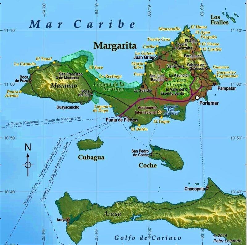 - цель многих туристов — пляж Пуэрто-де-ла-Крус, который признан лучшим на острове Маргарита;