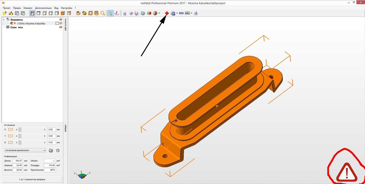В общем так открываем STL в нетфабе. Если видим что то аналогичное. Точнее вот тот значок с восклицательным знаком. Значит 3д модель косячная и с ней надо работать. Для этого нажимаем тот самый красный крестик на который указывает стрелочка. в итоге должны увидеть что то аналогичное. теперь на что указывают стрелки, 1 режим выделения треугольников 2 режим выделения поверхностей 3 режим выделения объектов 4 режим добавления треугольников работает аналогично режиму бридж ( мост) Один из косяков виден в виде жёлтых полос. Будем их править Только не так как написал один из пользователей (правил не я а нетфаб) если вот такое то это просто две поверхности в одном месте, значит просто удаляем нажам del на клаве. сделаем так чтоб не было таких мест увы это не всегда возможно в общем стараемся чтоб небыло ни таких мест ни жёлтых полосочек. в общем чтоб было что то похожее. Иногда бывает вот так. Ну просто кто то перед импортом в STL что то забыл сделать при помощи инструмента добавить треуголь