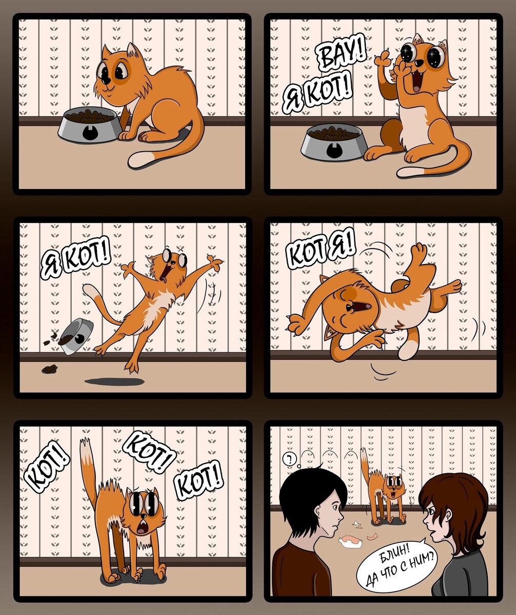 В группе под названием Заходи к Ди выходит сразу же несколько серий комиксов на разные темы. Одна из них называется Не. герой и ее суть заключается в том, что выпуски рисуют не авторы паблика, а его подписчики. В итоге получаются забавные комиксы в разных стилях и на разные темы. Один из выпусков, как вы могли догадаться, посвящен кошкам.