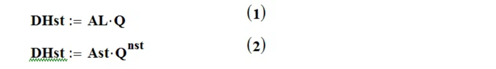 где : DHst – падение давления на элементарном участке ветви, AL – линейное сопротивление элементарного участка , Ast– местное сопротивления трения элементарного участка , Q – расход среды через элементарный участок, nst –степень при расходе Q, зависит от режима течения среды, для гидравлических расчётов степень n лежит в диапазоне от 1 до 2.