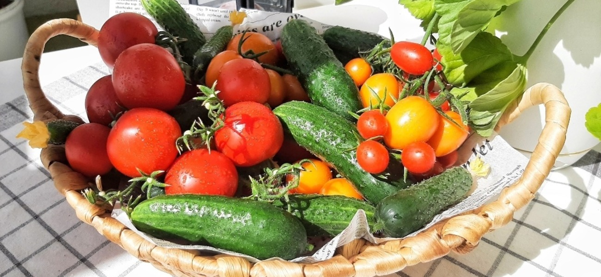Овощи: огурцы, помидоры, перцы острые и сладкие, редис. Зелень: лук на перо, базилик и др.