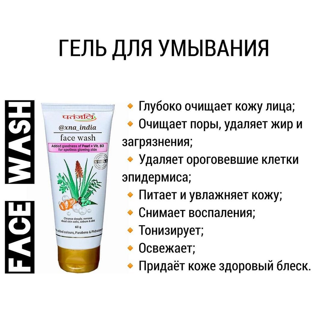 В состав входит экстракт кожуры апельсина, ним, тулси и алоэ вера, а также в обновленном составе - экстракт жемчуга и витамин В3.