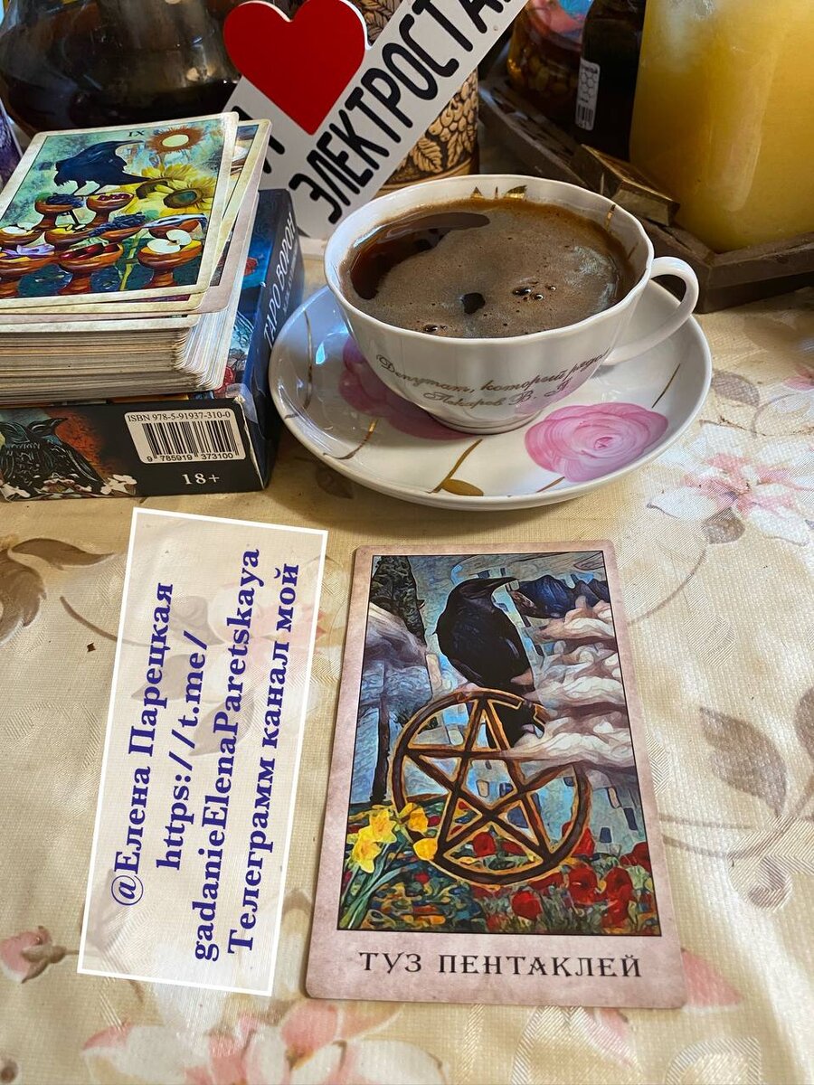 ♦️Карта Дня ТУЗ ПЕНТАКЛЕЙ по Картам Таро Ворон и Чашка Талисман Обережная с Кофе и Удачей !
