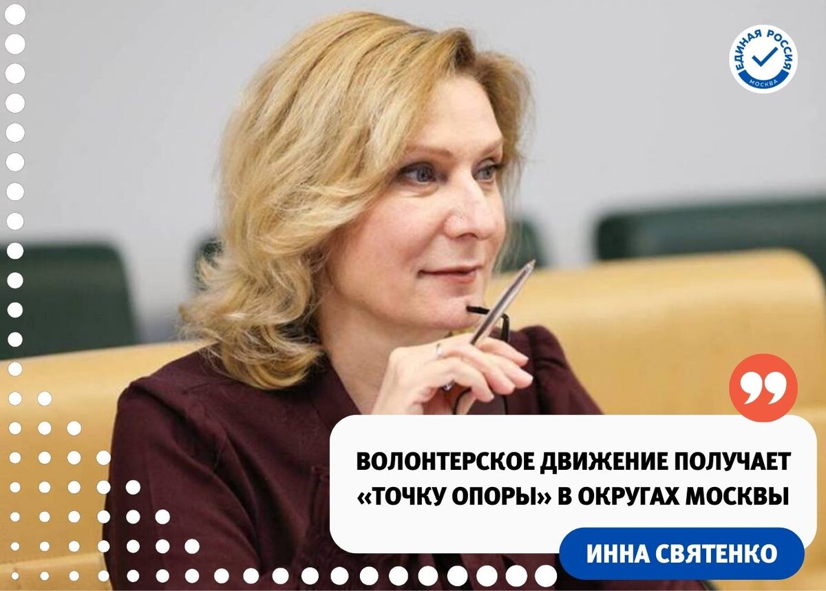Инна Святенко: Волонтерское движение получает «точку опоры» в округах Москвы. Большие усилия прилагаются для развития окружных центров «Мосволонтера». «Развитие волонтерства – это очень важная тенденция в обществе. Она показывает, как много людей у нас в Москве готовы включаться в общественные инициативы, помогать, заботиться»,– поделилась сенатор Инна Святенко. Центы «Мосволонтера» уже функционируют в САО, ЗАО и ЗелАО. Стоит отметить, что в этом году будут открыты еще три центра – на юге, востоке и северо-западе.
