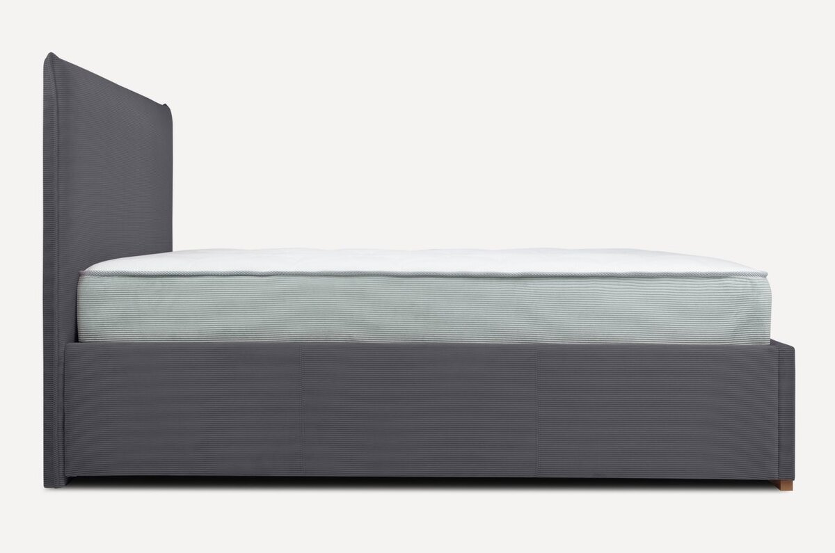 Кровать Шерона появилась в семи опубликованных проектах за последний год. Ее выбирают за лаконичность и сдержанный дизайн. Прямоугольное изголовье высокое и мягкое: вертикальная строчка «вытягивает» пространство вверх и «приподнимает» потолок.