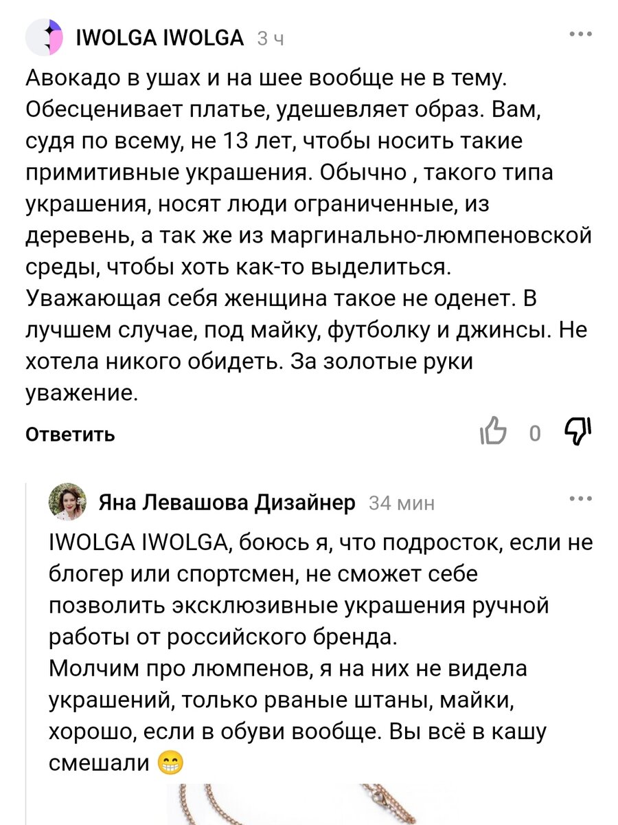 А "нормальные женщины" с 15 лет уже должны носить только "благородные металлы и бриллианты". А лучше раньше. И никак иначе, не может "дама" старше 18 лет носить какие-нибудь там пластиковые серьги, броши или колье, это просто непозволительно, а то ее за бомжа примут, и сразу в вытрезвитель заберут с улицы :) Так считает комментатор :) По поводу "московитости" это уже тренд :) Но пока самая злющая старушка на канале с 3 квартирами в Москве, доставшимися ей от родственников, не побеждена :) Ее даже забанить пришлось, настолько яд лила. Здесь по сравнению с ней детский лепет. А ещё как-то подозрительно много тётя знает о жизни маргинальных слоев и содержании мусорных баков. Может она как герои старого шоу "Наша Раша" проживает близ Рублёвки, помните, там были Сифон и Борода? :) Они как раз постоянно шиковали у бачков. Речь об этом образе, он и привлёк невероятную москвичку, знатока всех злачных мест столицы: Сшила себе платье на 50 000 подписчиков, а на момент написания статьи их уже 5040