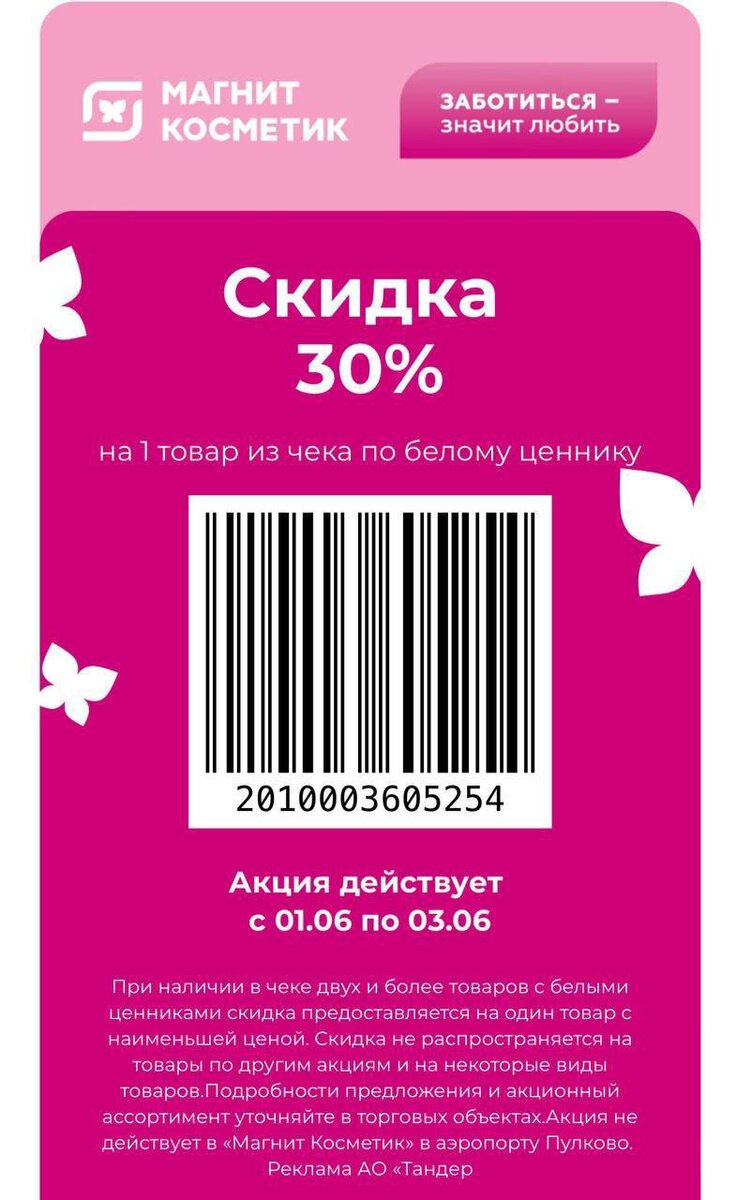 ‼️ 3 июня ПОСЛЕДНИЙ день работы штрих кода на -30% в Магнит Косметик