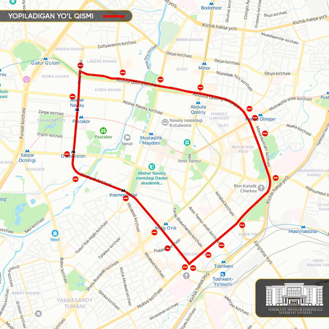 В воскресенье в центре Ташкента перекроют ряд улиц