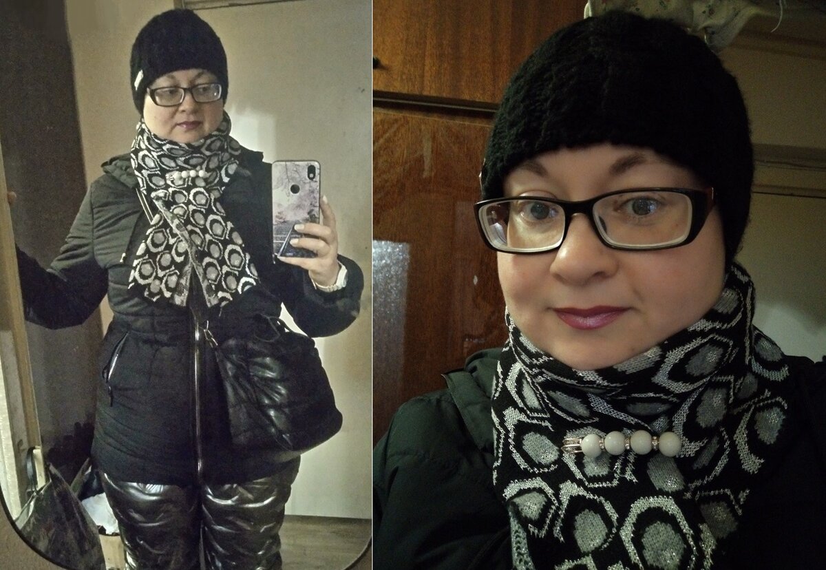 Я люблю одежду и обувь с металлическим блеском, поэтому когда увидела в продаже лыжные брюки, как будто отлитые из стали, да еще и с интересной фактурой, решила их взять. Тем более, что у меня давно лежал шарф с черно-серебристым принтом, но мне не с чем было его носить.