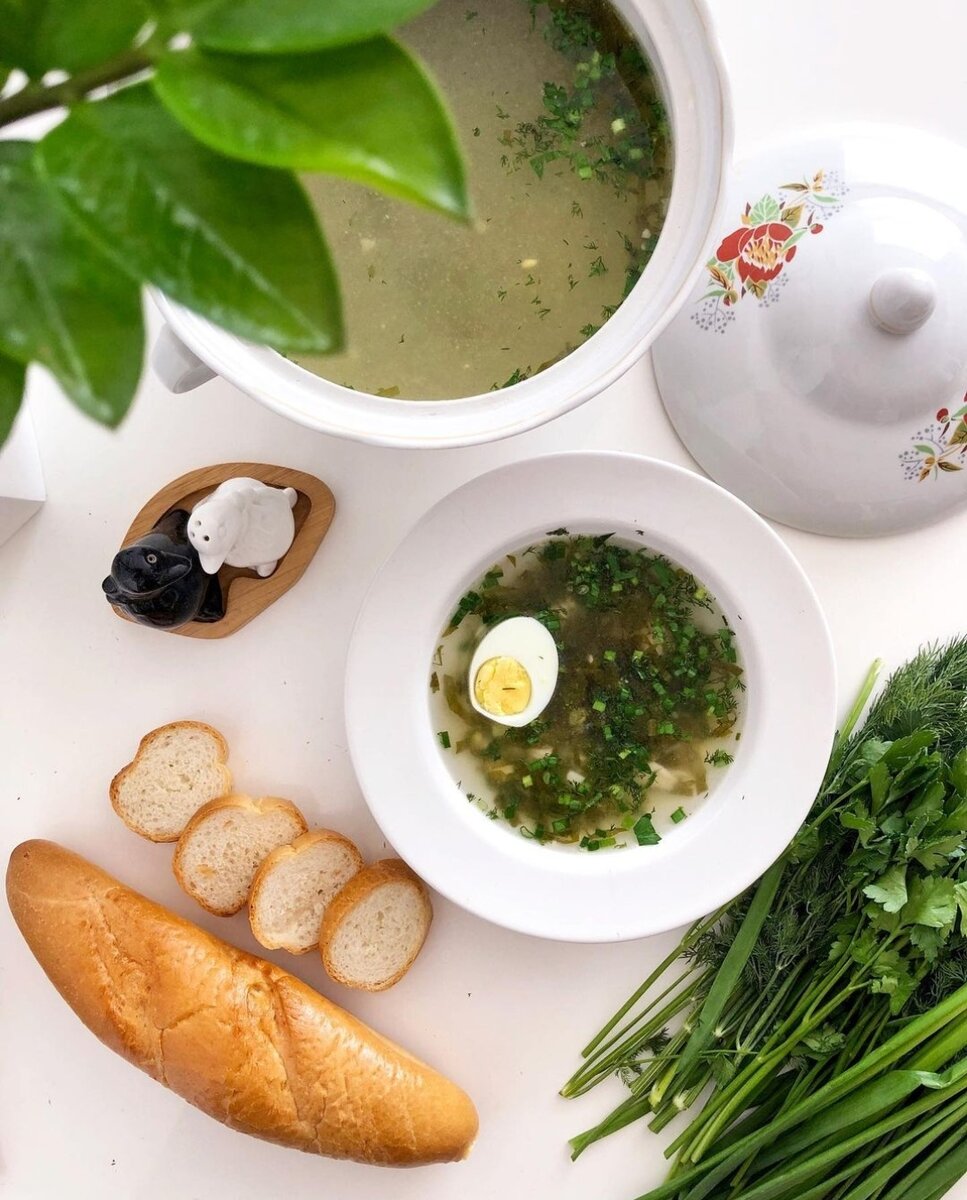 Сезонный супчик, который мои дети абсолютно оправданно называют "1000 витаминов" 🍲 Нам понадобится: 🌿2,5 литра овощного или мясного бульона (у меня бульон из индейки и овощей: лук, морковь, стебли петрушки и укропа, душистый перец и лавровый лист) 🌿2 вареных яйца 🌿1 крупный картофель 🌿40 гр риса или булгура (булгур даёт отличный аромат, я добавляю его), этот ингредиент можно пропустить, добавив больше картофеля 🌿150-200 грамм щавеля 🌿 несколько стеблей зеленого лука 🌿 зелень и сметана для заправки ⠀ В кипящий готовый бульон засыпаем крупу и закладываем картофель, варим ~15 минут, затем добавляем порезанные мелкими кубиками яйца, нашинкованный тонкими полосками щавель и мелко порезанный лук. Варим пару минут, пока щи хорошенько не закипят. Я добавляю чайную ложку сливочного масла и снимаю с огня. ⠀ Подаём щи со свежей зеленью и сметаной, украшаем яйцом (обычно я беру для этой цели перепелиные, но в этот раз забыла их купить). ⠀ Вот и все дела: полезный, вкусный и легкий обед