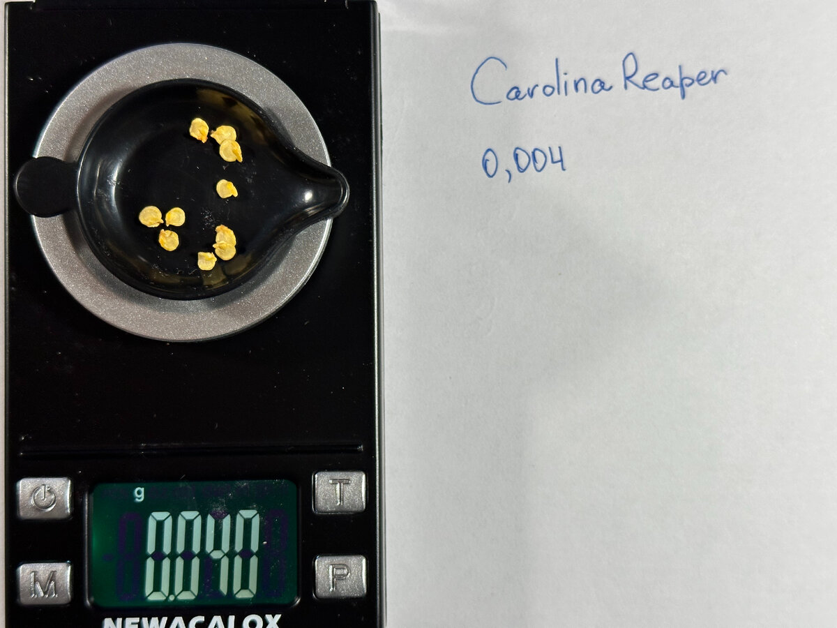 В интернете много информации про вес семян сладкого перца. Много таблиц с информацией по разным культурам. Правда, почти во всех таблицах разная информация. Если обобщить, то в среднем 150-200 семян на грамм. В общем, это правильная информация, но бывают небольшие отклонения, к в меньшую, так и в большую сторону. По острому перцу такой информации практически нет. Только в спецификациях к профессиональным семенам указывается информация о количестве семян в 1 кг. Это очень важная информация, которая нужна сельхоз производителям для определения веса семян на определенную площадь при определенной норме высева. Еще эта информация необходима компаниям, который фасуют семена для розничной продажи. Я в описании сортов иногда указываю не вес семян, а просто указываю крупные или мелкие семена у сорта. Потому что, например, для цельноплодного консервирования лучше использовать сорта с мелкими семенами. А размер стручка не всегда коррелирует с размером семян. Для примера, как по весу различаются с