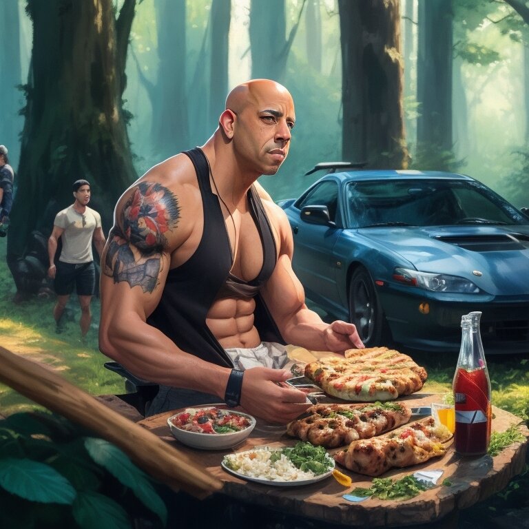 Однажды Доминик решил устроить пикник для своей семьи. Он хотел создать что-то особенное и романтическое. Поэтому он отправился в магазин и купил все необходимые продукты. Выбрав самую изысканную и качественную баранину, свежие овощи, специи и бутылку хорошего вина. На своей машине он отправился в лес, где нашел прекрасное место для пикника. Разведя огонь, он установил шампуры с мясом над костром и начал их обжаривать до золотистой корочки. Тем временем он подготовил овощи и нарезал их, чтобы подавать вместе с вином. Когда шашлыки и овощи были готовы, Доминик выложил их на большую тарелку и разложил скатерть. Он пригласил свою семью к пикнику, и они собрались вокруг скатерти, полные ожидания. Все приступили к трапезе и были в восторге от вкуса блюд. Они неустанно хвалили Доминика и выражали ему благодарность за такой прекрасный пикник. Доминик был счастлив, видя, что его усилия оказались успешными и смогли порадовать его семью. Он сказал им, что их всех любит и что делает все это ради