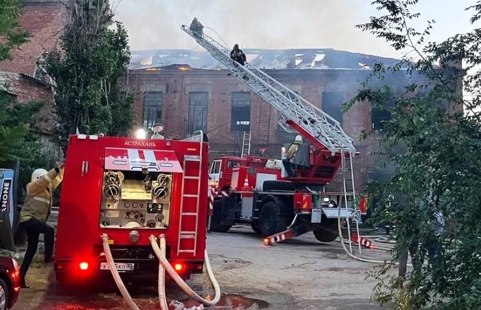 С огненной стихией сражались 43 пожарных. 2 июня в 19:44 в оперативную дежурную смену ГУ МЧС поступило сообщение из Советского района Астрахани: по ул. Боевая, недалеко от реки Царев, загорелось 2-этажное неэксплуатируемое здание. Огонь, охватив внутренние помещения и кровлю,распространилося на площади в 635 кв. метров. Пожарно-спасательные подразделения среагировали по повышенному рангу пожара. На место возгорания от МЧС и ГКУ «Волгоспас» прибыли 14 единиц техники и 43 человек личного состава. К 21:20 пожар был локализован, а в 21:39 огнеборцы ликвидировали открытое горение. Пострадавших не было. Информация уточняется. Фото: пресс-служба ГУ МЧС по АО
