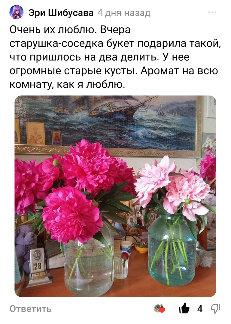 Приветствую всех моих читателей и тех, кто решил присоединиться! По уже сложившиеся традиции, в конце каждого разбора цветов, мы смотрим красоту с комментариев моих читателей! Любуемся: У меня даже желания можно показывать! Все пионы очень красивые, спасибо за то, что делитесь такой красотой! Всю неделю мой канал благоухал пионами! Мне очень приятно! Спасибо всем за внимание, с понедельника начнутся маки! О первой части Ч.1 можно почитать тут О второй части Ч.2 можно почитать тут О третьей части Ч.3 можно почитать тут О четвертой части Ч.4 можно почитать тут О пятой части Ч.5 можно почитать тут Прошу ставить 👍 С вами была Гуля разбирательница пионов, Среднее Поволжье.