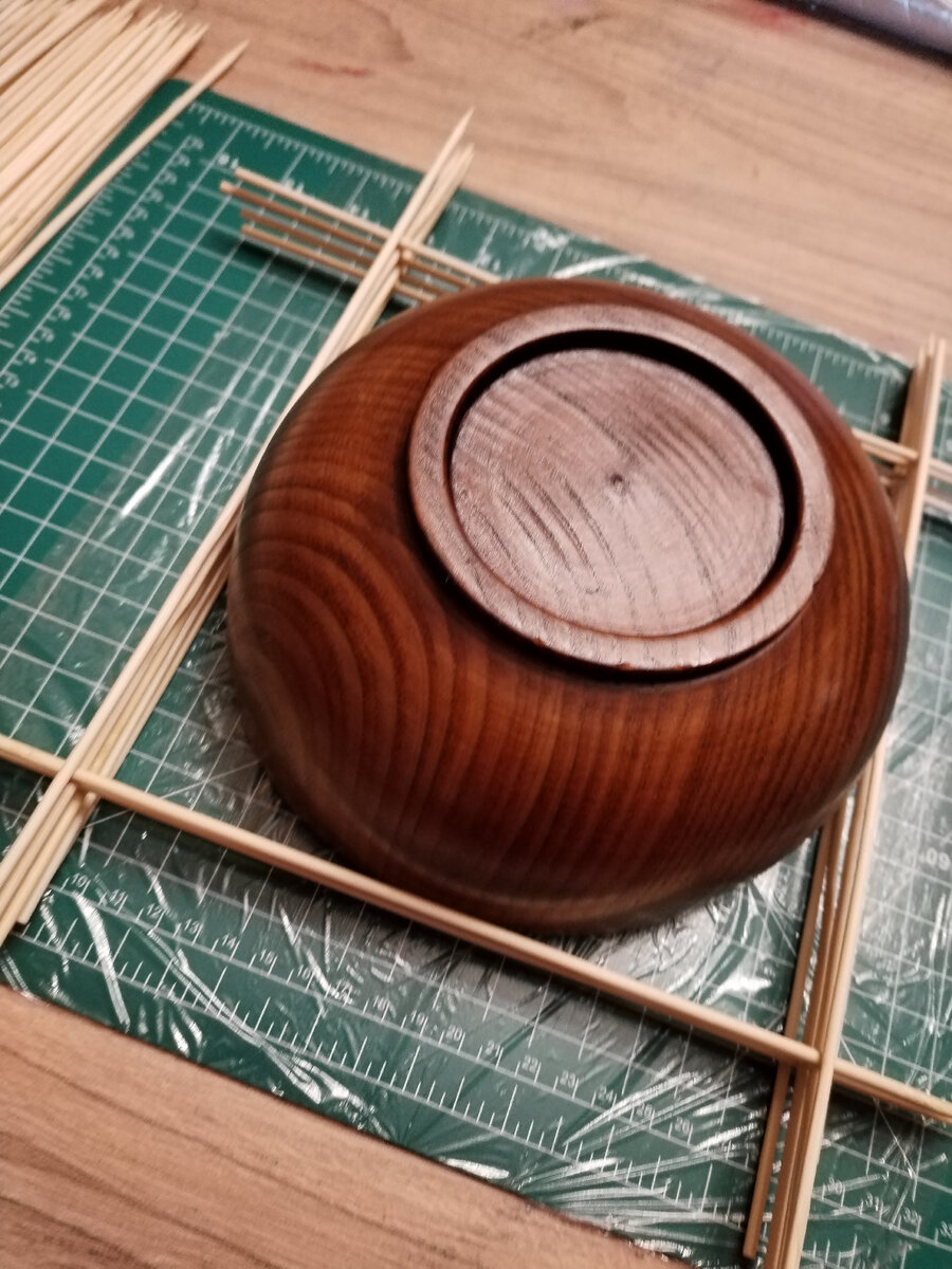 Много лет назад, когда этого не было, а хотелось, собирала из чего попало. Сейчас все можно купить. Дабы не закиснуть, продолжаю собирать, но уже из хороших материалов. Берем мисочку и шпажки. Берем мисочку и шпажки. Как-то так "колодцем" складываем. По местам контакта заливаем щедро клеем ПВА. Излишки стекают на пленочку, клей застывает и становится незаметным. После полного застывания проверяем и промазываем там, где плохо слиплось. Конструкция довольно хлипкая, поэтому декорируем и скрепляем одновременно тесьмой или красивой ниточкой. Как-то так. Восьмерочкой. Это та часть, которая по мисочке закругляется. Донышко. Стоит конструкция так, чтобы можно было крутить и подлезать разными предметами в труднодоступные места. Переплетение вольное, главное, чтобы нить скрепляла конструкцию надежно и не портила вид. Инструменты- шпилька, вязальный крючок, большая игла и все, что под руку попадётся. Дойдя до другого угла, протягиваем ниточку до условного верха корзиночки и опять "восьмерочк