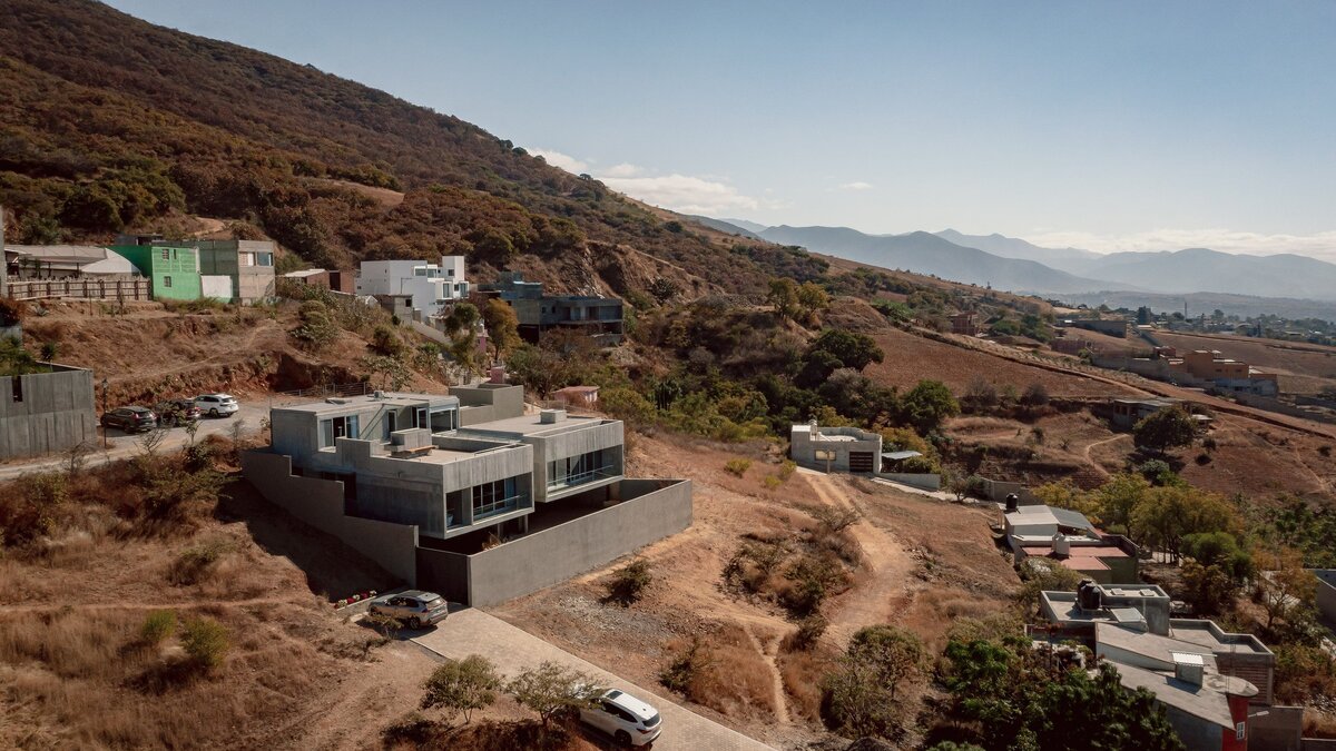 Мексиканская студия Espacio 18 Arquitectura сбалансировала обширный бетонный дом , спроектированный как «скала, вырезанная для создания скульптуры» на склоне холма в Оахаке .