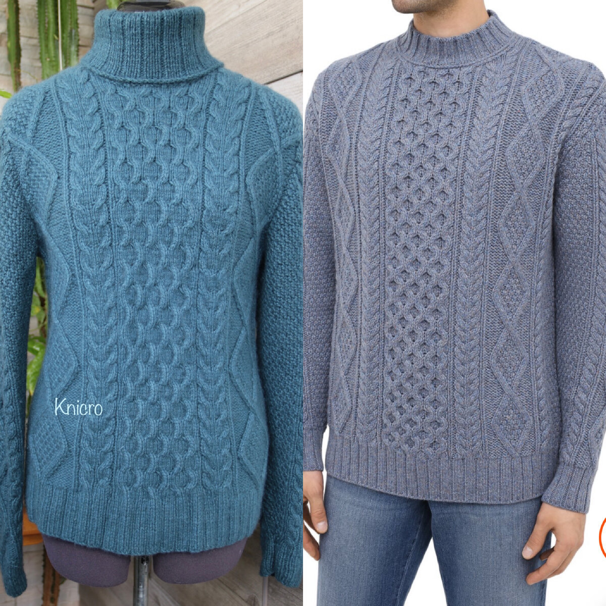 Свитер можно вязать из любой пряжи, любыми спицами, узор подвижен, его можно как расширить, так и уменьшить, и в этой статье я расскажу как. Модель вяжется снизу вверх, основная часть идет поворотными рядами с одним боковым швом. В оригинальной модели круглый невысокий ворот, однозначно тоньше пряжа, но мой клиент пожелал высокое горло и определённый цвет и толщину пряжи. Начинаем узор с резинки 3*1, она будет по низу изделия, рукавам, а также на вороте. Свитер из следующих узоров, в последовательности: *узор путанка (1 лиц, 1 изн, в следующем ряду над изн - лиц, наз изн - лиц) узор с ромбами узор жгутами узор сотами узор жгутами узор с ромбами* и повтор еще раз для спинки Все изделие состоит из 4х узоров, которые повторяются 2 раза (перед и спинка). Поэтому изначально необходимо высчитать петли, расположение всех узоров, а затем приступать к вязанию. Я начала с того, что связала необходимую мне резинку и начала выстраивать на ней узор. Не забывайте о том, что косы не только до