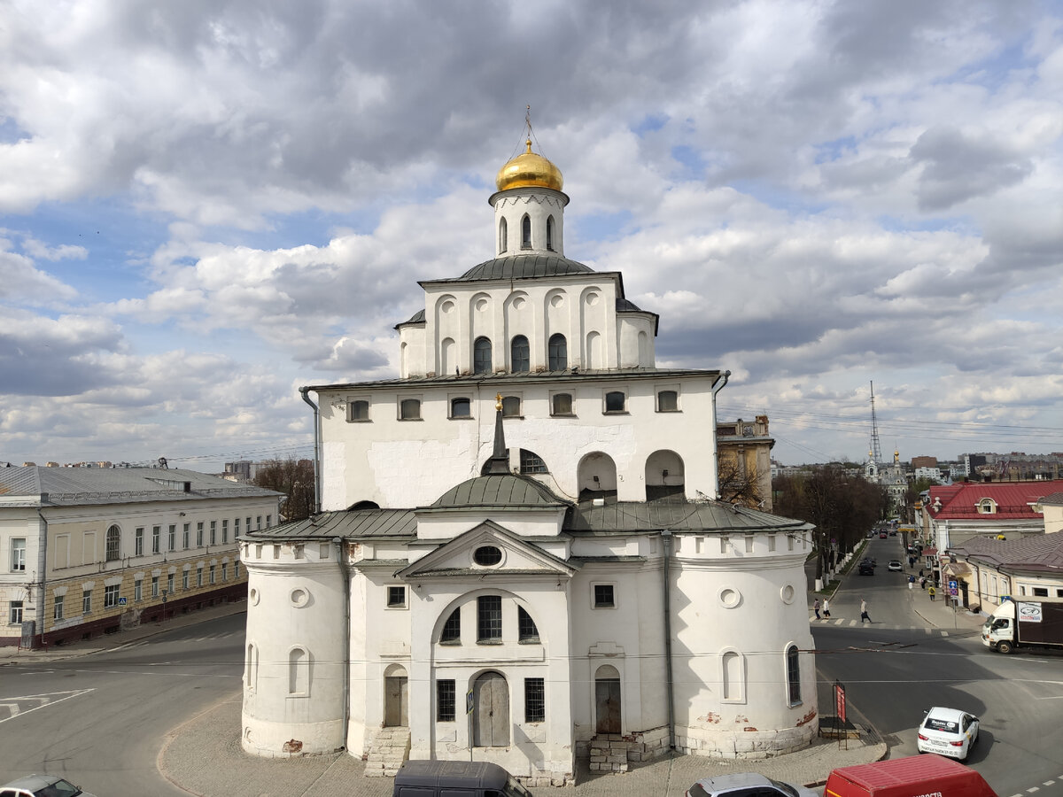 Я ехала уже слегка уставшая и переполненная впечатлениями от трёхдневных приключений. Эти места настолько пропитаны историей, что и месяца не хватит, чтобы увидеть всё, что хотелось бы. А с другой стороны, всего слишком много, чтобы впитывать ощущения без остановки. Мы въехали в город по Большой Московской улице, ориентируясь на двадцатиметровые Золотые Ворота. Даже в условиях набегающих дождевых туч их видно издалека.