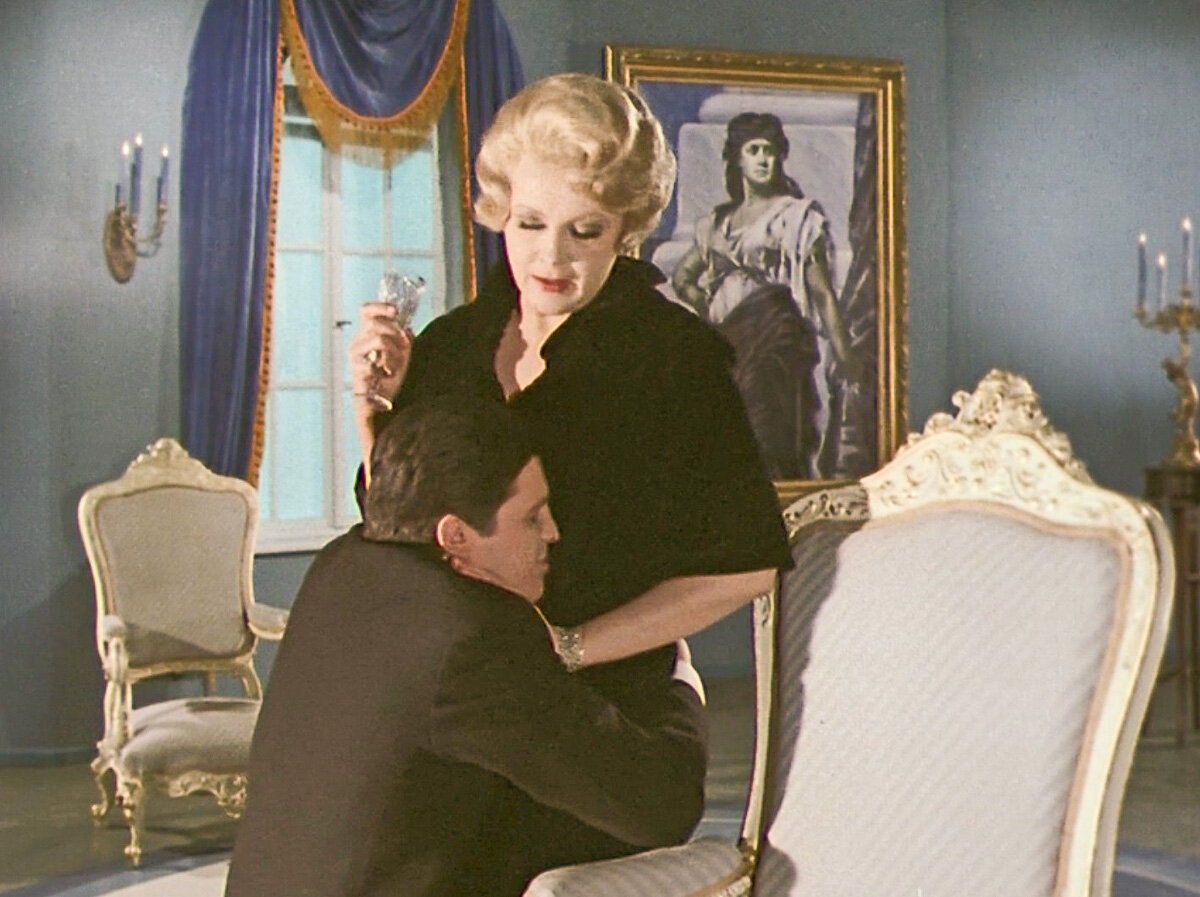 Потрепанная и помятая женщина нашла себе молоденького мальчика для плотских утех. Какая там любовь! Вот любовь была у Кати к Афоне или у Сережи Лаврова к Клаве. Там да - сразу видно, большие чувства. Правда, в одну сторону. Можно вспомнить и взаимные истории. К примеру, Дик и Джоанна ("Черная стрела"), Женя Лукашин и Галя, поручик Ржевский и Шура Азарова. Ничего подобного у Джулии Ламберт к Тому Феннелу не наблюдалось. Актрисе просто захотелось развлечься со смазливым пацаненком. Именно Джулия была старше, опытнее, умнее и конечно же "вела" эту пару. Она соблазнила Тома, затащила в свои сети, а тот просто не мог сопротивляться. Да и зачем, если бабуле так уж хочется? Я никого не хочу обидеть. Для нас с вами 50 лет еще вполне молодой возраст, но по отношению к 20-летнему парнишке Джулия именно бабуля. Тем более в Лондоне в 1938 году. К тому же у Тома Феннела были совершенно конкретные цели: избавиться от нищеты и затесаться в высшее общество. И то и другое ему вполне удалось. При этом,