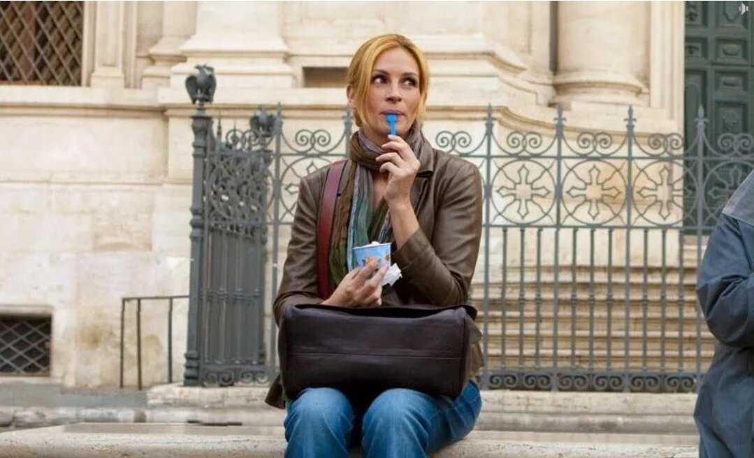 Нашу главную героиню зовут Элизабет, в свои тридцать лет у неё есть всё, что может пожелать любая женщина: муж, успешная карьера журналиста. В один момент она понимает, что она несчастна, она потеряла искру жизни. Ночью, молясь в ванной она просит Бога помочь ей и найти ответ. Вскоре она решается пойти на серьёзный шаг - развестись с мужем. Из-за обиды мужа он решил оставить её без денег, но не смотря на это она решает отправиться в путешествие по трём странам: Италия, Индия, Индонезия, пытаясь найти себя. Если обратить внинамание на название "Ешь, молись люби", то можно уже догадаться, что в Италии она восхищается и наслаждается вкусной едой и учит себя ни в чем себе не отказывать. В Индии она начинает вести духовные практики, молиться, учиться управлять своим подсознанием. А в Индонезии находит свою любовь, встретила мужчину и месте с ним живёт спокойной и счастливой жизнью.