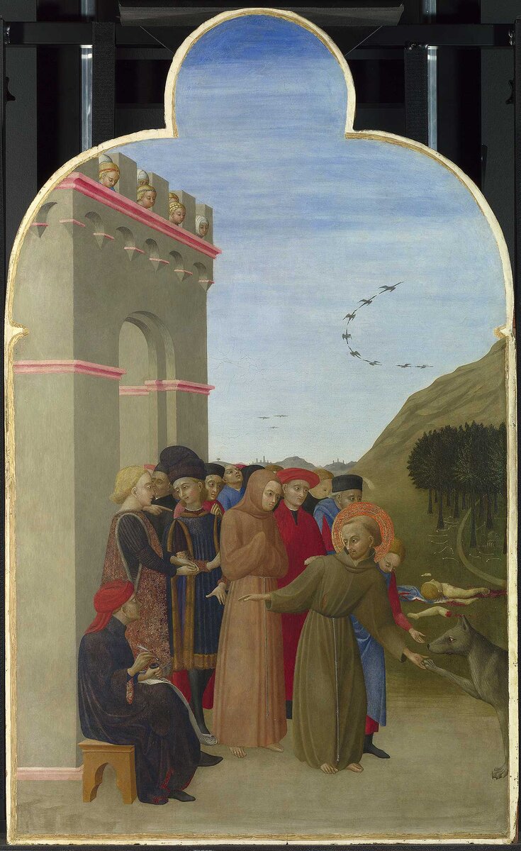 1. Сассетта (Стефано ди Джованни). Легенда о волке из Губбио. Дерево, 87X52 см