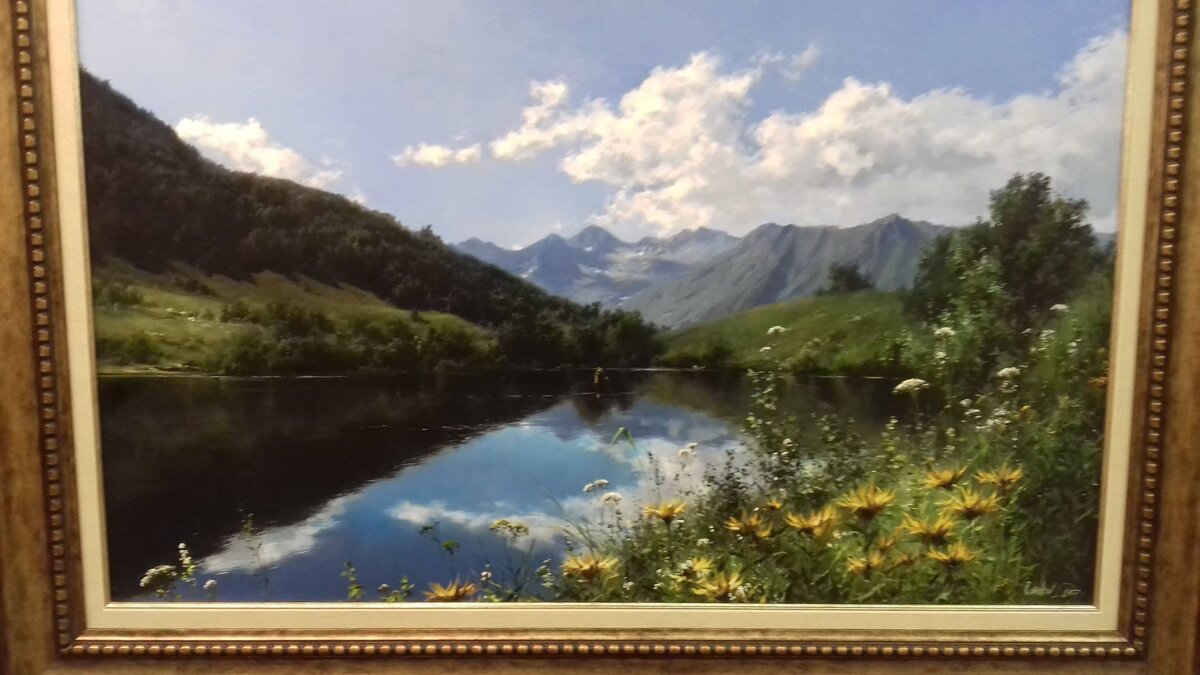 Привлёк моё внимание стенд с несколькими замечательными картинами - все без исходных данных - даже без имени автора; лишь малоразборчивая авторская подпись латинскими буквами скромно выглядывала из-под рамок. Спросил служительницу галереи: "Кто он, этот автор?" - "Да это художник Рыжиков из Чувашии," - скромно ответила женщина. Я ещё долго вглядывался в его пейзажи - словно протянешь руку вперёд и окажешься в той реальности; настолько всё натуралистично... Передавая на холст изображение, художники ретранслируют нам свою душу... Я не мог не сделать этих фото его картин... Обязательно больше узнаю о художнике и с необычайной радостью ближе познакомлюсь с его творчеством. И познакомлю с ним многих любителей живописи...