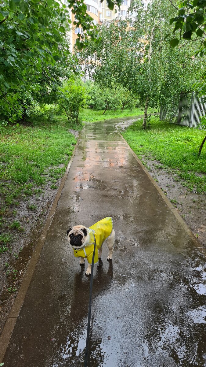Спааать, - лучшее, что может сделать мопс в дождливый день. С перерывом на еду и прогулки, конечно. - Для хорошего сна надо походить на свежем воздухе, - убеждал я себя, когда утром вышел из подъезда. Лило как из ведра, а дела надо было делать. Так что и выбора у меня не оставалось: гулять так гулять. С другой стороны, в дождь всё обогатилось новыми запахами, так что понюхать тоже было интересно. Больше всего прогулка не нравилась мамичке, которая подрагивала и ныла под дождем. Ну, а как вернулся домой и от души поел, - то можно и поспать. Тем более, что погода сама командует. К обеду дождь прекратился, так что вывел маму на вторую прогулку: как еще она находит положенные 10 тысяч шагов? Заодно сам хорошенько побродил и еще раз понюхал всё, что мог. Мамичка попросила зайти в магазин за шоколадкой. Пожалел ее, согласился: пусть поест лакомство, порадуется. Вернулся, поел, - и опять спать. В дождь это самое лучшее занятие для мопса, я считаю. Друзья, расскажите, а что вы люб