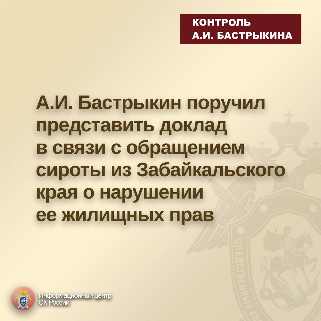 А.И. Бастрыкин поручил представить доклад в связи с обращением сироты из Забайкальского края о нарушении ее жилищных прав