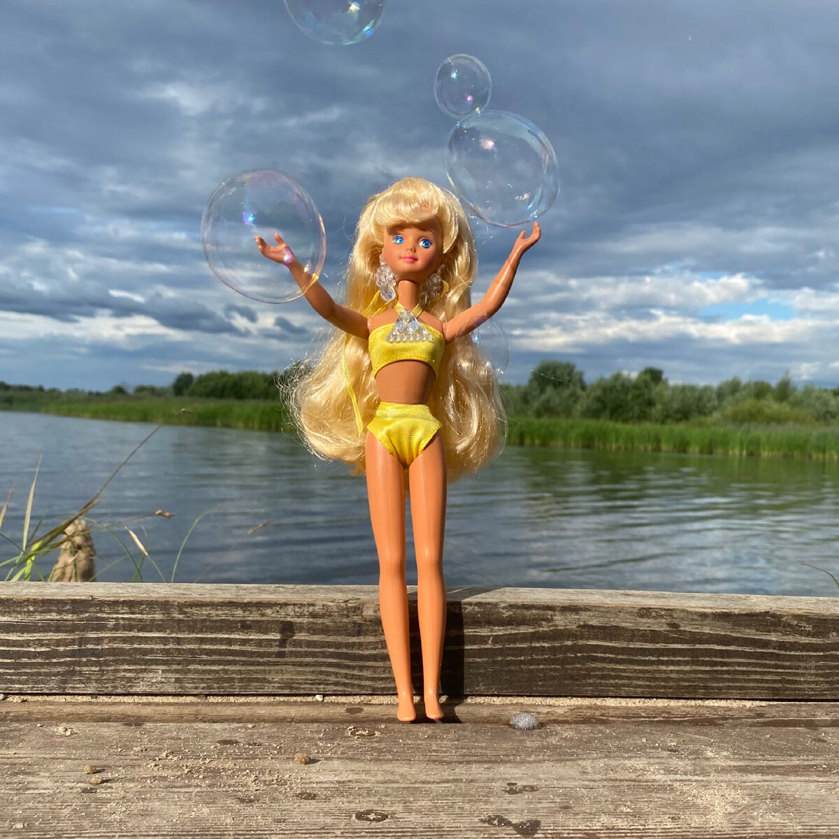 Продолжаю пляжную неделю, несмотря на дождливую ночь в Москве😅 Сегодня хочу рассказать о первой и пока единственной моей кукле-сестренке Барби из 90-х - Скиппер. Купила я ее не спонтанно, а наверное перейдя на какой-то уровень, когда захотелось разнообразия. Барби, Тереза и Мидж у меня были. Захотелось попробовать совсем другой тип тела и лица. В группах по продажам кукол из 90-х, как правило очень много хорошеньких разнообразных Келли, но это совсем ребенок на мой взгляд, пока они мне не интересны. А вот Скиппер мне приобрести захотелось) К тому времени уже разобралась, что пляжные куклы почему то дороже) Может быть на них есть спрос, так как для многих это была первая кукла в детстве(стоили они тогда, логично, дешевле). Так что решила купить самую дешевую пляжную девочку-подростка, вот такая логика😅 Удачно подвернулась Skipper Sun Jewel в очень, ну просто очень мятой коробке по низкой цене🤪 Решила взять ее! Когда девочка приехала, сразу расположила к себе💛 до чего позитивное юно