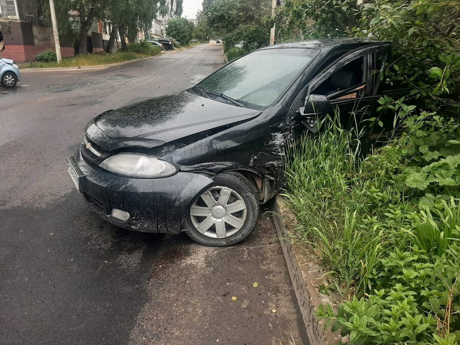 В центре Курска после аварии машину выкинуло с дороги