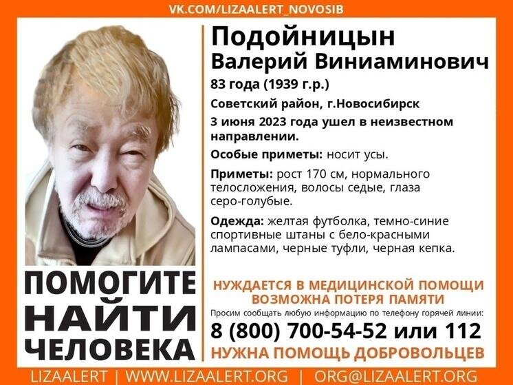В Новосибирске объявили в розыск 83-летнего Валерия Подойницына. В Новосибирске 3 июня в самый солнцепек пропал 83-летний пенсионер. Мужчина ушел из дома в Академгородке в неизвестном направлении. В тот момент столбики термометров в областной столице показывали +32 градуса. Ориентировка на розыск пропавшего была опубликована в группе поискового отряда "ЛизаАллерт Новосибирской области" ВКонтакте. Отмечается, что пенсионер нуждается в медицинской помощи. Волонтеры объявили срочный сбор. Приметы пропавшего: рост 170 см, глаза серо-голубые, волосы седые, среднее телосложение. Мужчина носит усы. Пенсионер был одет в желтую футболку, темно-синие спортивные штаны с бело-красными лампасами, черные туфли и черную кепку. Напомним, ранее в Новосибирской области волонтеры разыскивали 53-летнюю женщину.