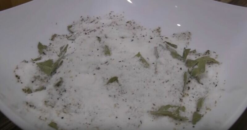Начало процесса, это перво на перво, поход в магазин или на рынок за салом. При выборе оно должно быть белого цвета, может быть даже с чуть розоватым оттенком. А шкурка должна быть светлой, тонкой и без щетины. Это показатель свежести. Затем запаситесь специями и приступайте. Ингредиенты: Приготовление: 1. Насыпьте в миску 4 столовых ложки соли. Лавровый лист мелко покрошите и положите туда же. Следом добавьте черный молотый перец и перемешайте. Подробнее Важно! Соль берите крупную и не йодированную. Её можете особо не жалеть, так как сало само возьмет ровно столько, сколько ему нужно. 2. Сало для удобства порежьте на четыре крупных куска. Чеснок очистите и выдавите через пресс. Затем натрите им каждый кусочек со всех сторон. 3. Далее эти куски, по очереди, очень хорошо обваляйте в соляной смеси с приправами. Так, чтобы соль обильно легла на каждую сторону. Затем положите в подготовленный чистый контейнер, на дно которого тоже предварите