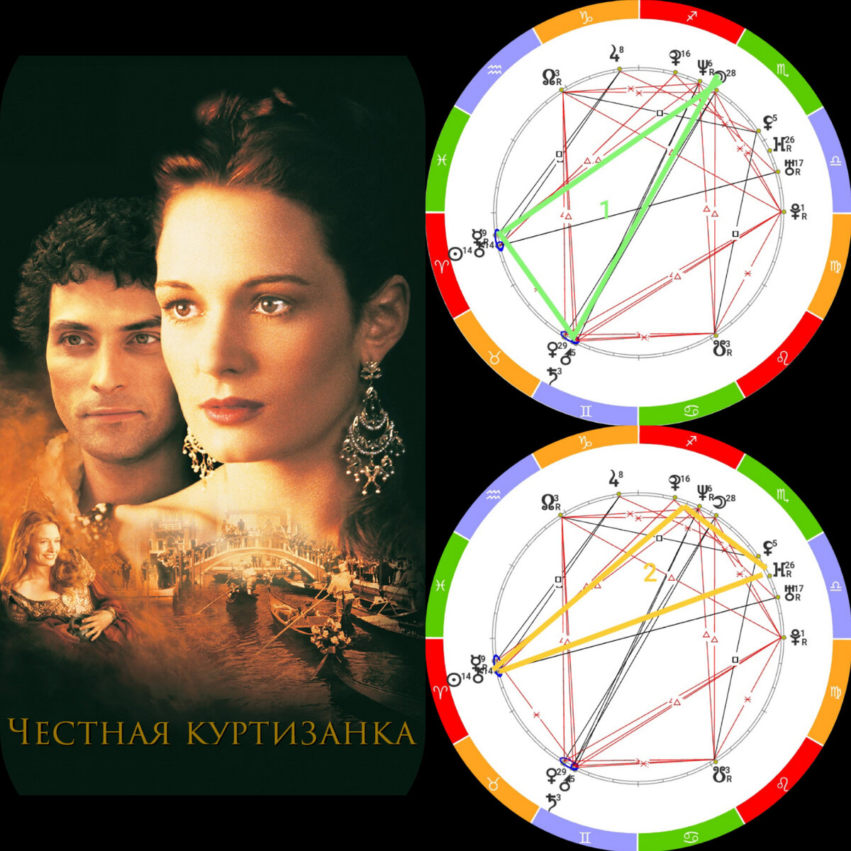 "Честная куртизанка", сегодня пойдёт речь об актрисе, исполняющей главную роль, Катрин Маккормак. На её карте я покажу, что настоящие актёры не играют, они живут в роли, им близки и знакомы энергии, которые хочет передать режиссёр с помощью них. Солнце в Овне, если мы встретим женщин, чьë светило находится под властью Марса, то с уверенностью может сказать, что она хочет быть с мужчиной, она чувствует и действительно любит мужские энергии. Положение Солнца дало ей возможность точно понимать, что чувствуют мужчины, Хирон - стать вдохновляющей и манящей, а Меркурий в этом же знаке облачил это всё в расчёт. Это же сочетание подарило ей высокий интелект и эрудицию. Она буквально стала олицетворять собой "я дарила мужчинам мечту о любви". Такое сочетание планет также открывает её талант писателя, она действительно будет остроумно и колко мыслить, быстро оценивая ситуацию , тот самый "острый язычок". Но так как в Марсе нет места обычным энергиям Венеры, он её изгоняет, то именно как внешний