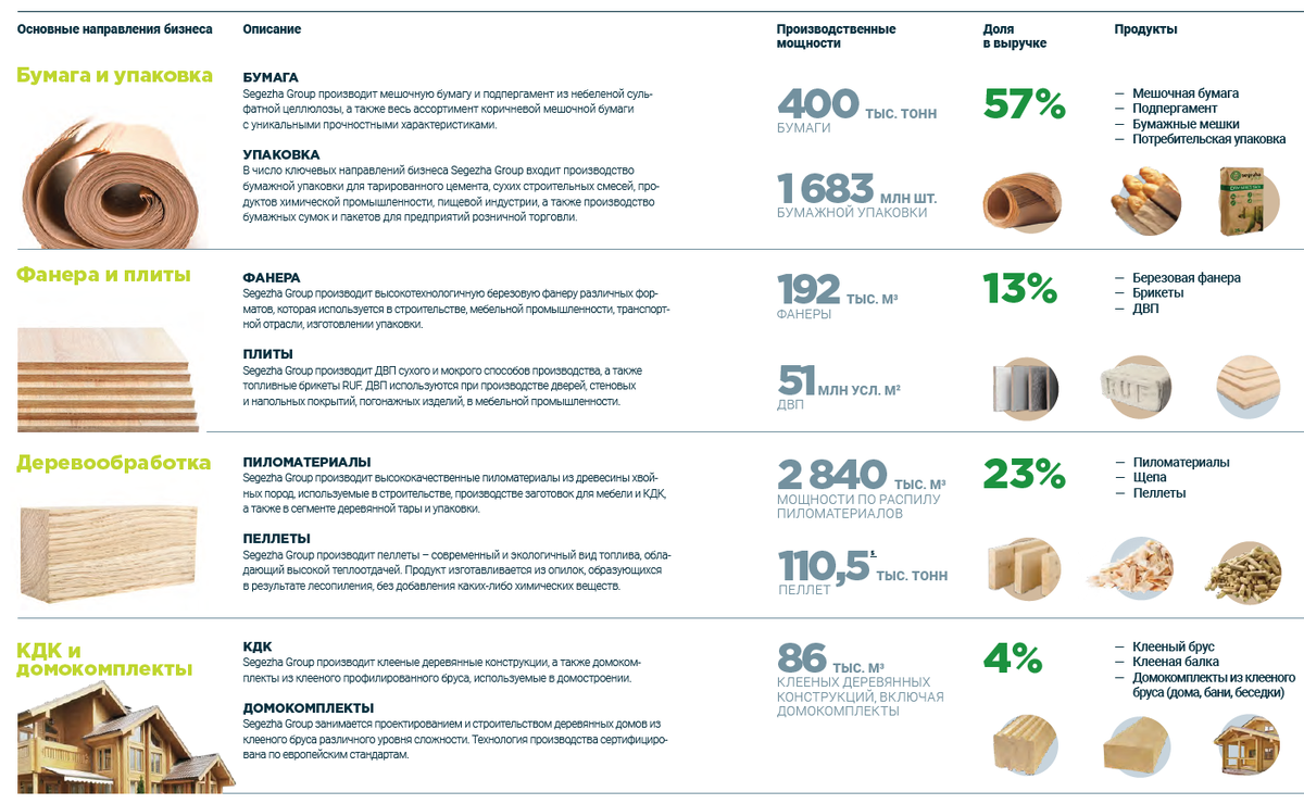 Вертикально интегрированный лесопромышленный холдинг в составе группы компаний АФК Система, торгующийся на Московской бирже. География активов охватывает 11 государств, основное производство находится в России. В структуре компании четыре ключевых сегмента: бумага и упаковка, фанера и плиты, лесные ресурсы и деревообработка, домостроение. Продукция реализуется более чем в 100 странах мира. Холдинг специализируется на производстве хвойных пиломатериалов, домокомплектов из клееного бруса, мешочной бумаги и бумажных мешков.