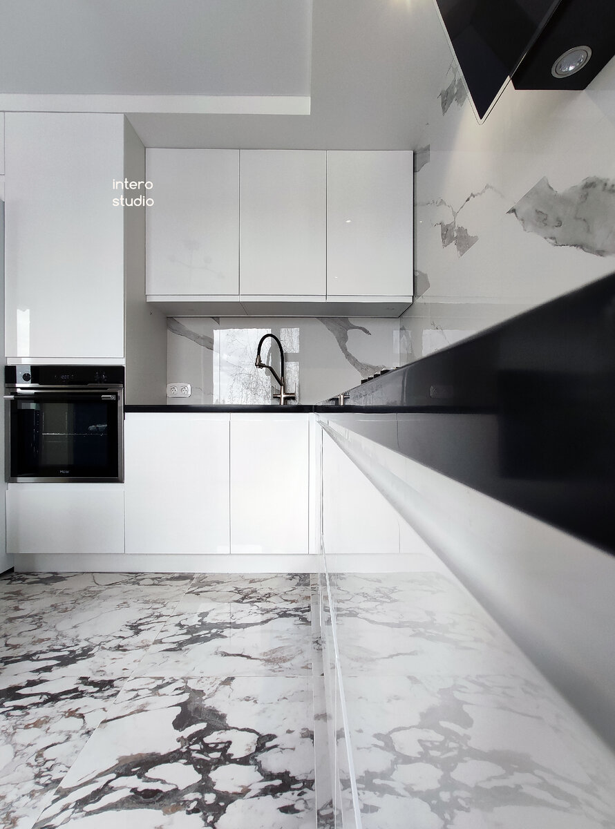 В этом проекте кухни в Кубинке-8 вы можете увидеть яркий пример такого проекта Ровная глянцевая столешница из акрилового камня Grandex Вытяжка без зазоров и видимого крепежа Вырезы в мебели, изготовленные на производстве, без сколов Геометрия и симметричность выкатных механизмов И никаких плинтусов на столешнице