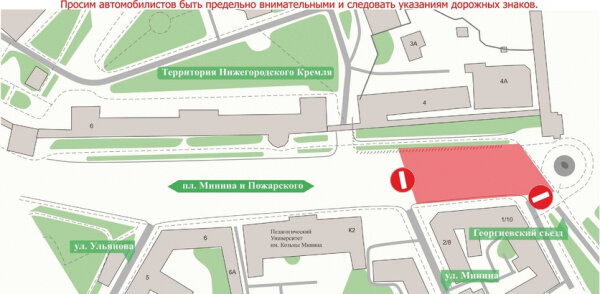 Движение транспорта будет приостановлено на участке от улицы Минина до Верхне-Волжской набережной. Объезд возможен по прилегающим улицам.