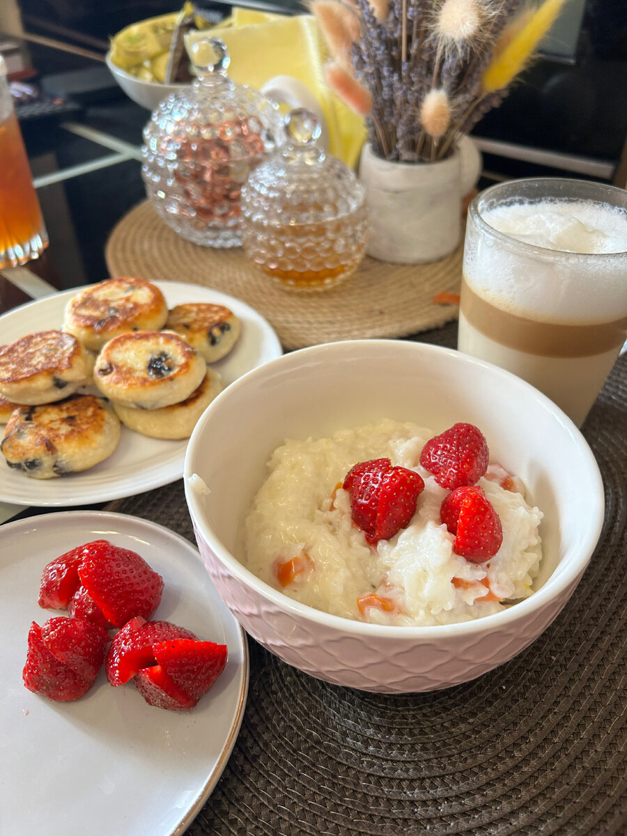 Утром что важно? Конечно, создать себе настроение!!! 🙃 Красиво сервировать и накрыть яркий завтрак для всей семьи. Сегодня делаем рисовую кашу с курагой и ягодами. Нам понадобится 🥣 Стакан воды 🥣 Рис 6-7 ст ложек 🥣 горсть кураги 🥣 1 ст лодка сахара 🥣 1/2 или почти стакан молока 🥣 щепотка соли 🥣 клубника или др ягоды Готовим просто 🔹 в воду высыпаем рис и ставим на огонь. Варим пока вода вся не уйдёт. Добавляем щепотку соли и сахар (можно и без него!) 🔹 потом вливаем молоко и на небольшом огне варим еще 5-7 минут. 🔹 Курагу хорошо промываем и режем мелкими кусочками. Добавляем в кашу, варим пару минут еще и накрываем крышкой даем постоять. 🔹 клубничкой украшаем сверху 😘 Приятного аппетита, Пупсики! И отличного начала дня!